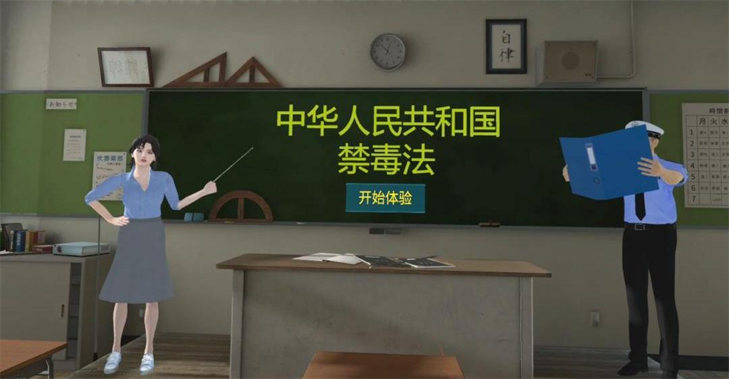 將現(xiàn)實(shí)中的普法教學(xué)場景通過三維建模技術(shù)高度還原,讓體驗(yàn)者仿佛置身于真實(shí)的普法教室內(nèi)。場景中包含警官、老師、學(xué)生等元素,提供沉浸式的教學(xué)體驗(yàn)。