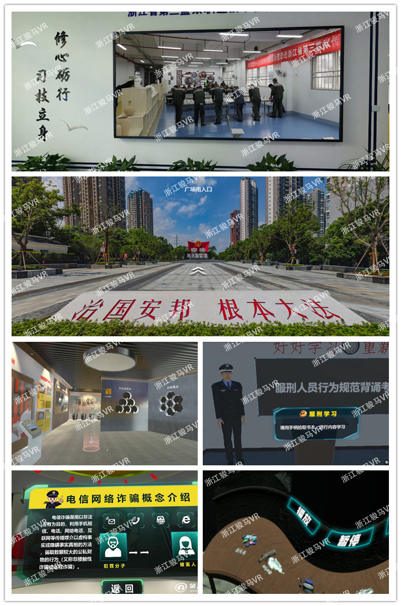 通過“VR禁毒館科普館”、“VR防詐騙體驗(yàn)”、“VR憲法廣場”、“VR廉政體驗(yàn)館”、“VR監(jiān)獄生活體驗(yàn)”、“浙江省第三監(jiān)獄實(shí)訓(xùn)基地VR場景”等系統(tǒng),讓社矯對象認(rèn)清危害行為的同時(shí)加深悔罪意識(shí),從而實(shí)現(xiàn)“心有所戒,行有所止”的教育效果。